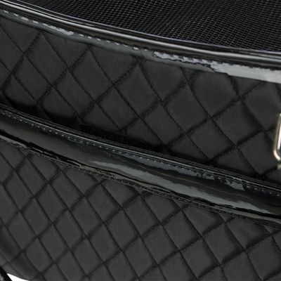 Moteriktig transportveske til små hunder opptil 5 kg med integrert kort bånd, stilig vattert trekk og kunstskinn, 2 innganger, øvre nettinginnsats kan tildekkes, praktisk ytterveske, farge: svart