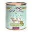Hvorfor inneholder Terra Canis Sensitive for hunder alltid litt vann og/eller gele? Ferskt kjøtt og friske grønnsaker, frukt og urter har et svært høyt vanninnhold (70% til 90%). Gjennom oppvarmingen i produksjonsprosessen utskilles vannet delvis. Men, i motsetning til i åpen gryte kan ikke vannet i boksen fordampe og forblir derfor i boksen. Disse Terra Canis måltidene inneholder ikke kornprodukter eller pseudokorn og syntetiske bindemidler. Vannet kan derfor ikke bindes og gjennom kokeprosessen får det derfor en geleaktig karakter. Denne geleen er altså et naturlig resultat av kokemetoden og skal serveres med fôret ettersom det inneholder viktige næringsstoffer. Ingrediensene i disse boksene består generelt ikke av vesentlig mer vann enn Terra Canis Classic måltidene som inneholder kornprodukter, men i Classic måltidene er vannet bundet av hirse, naturris og amarant.