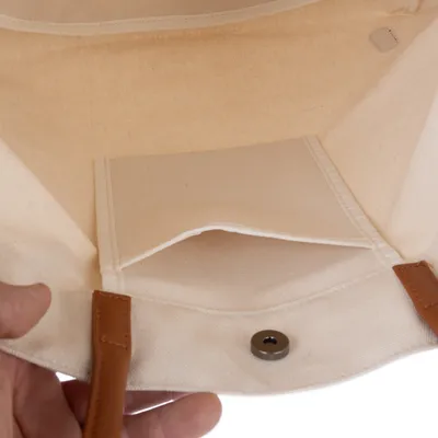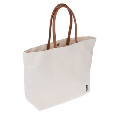 Handlenett i lerret for kattefans,lange avrundede håndtak, stor kapasitet, perfekt for shopping, "Cat Mom"-trykk, med liten innerlomme, lukkes med trykknapp,  farge: beige